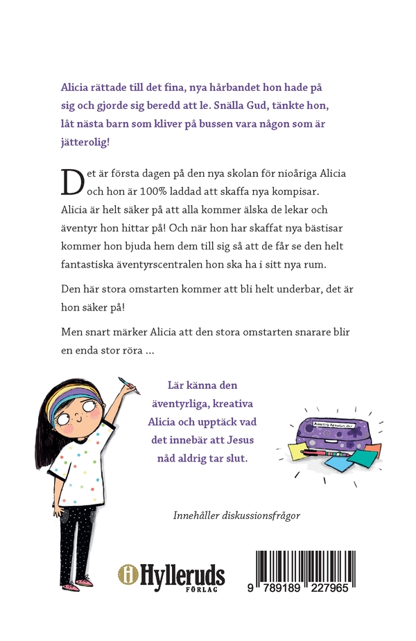 Det är första dagen på den nya skolan för nioåriga Alicia och hon är 100% laddad att skaffa nya kompisar. Alicia är helt säker på att alla kommer älska de lekar och äventyr hon hittar på! Och när hon har skaffat nya bästisar kommer hon bjuda hem dem till sig så att de får se den helt fantastiska äventyrscentralen hon ska ha i sitt nya rum.