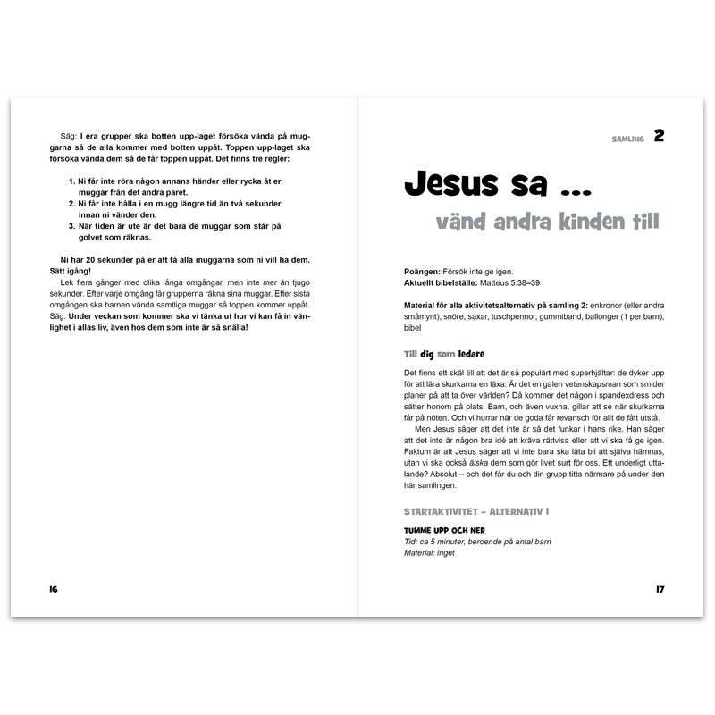 Det är lätt för en vuxen eller tonårig barnledare att ha hand om de här samlingarna – och de gör att barnen både blir engagerade, roade och växer i sin tro! Alla samlingarna är …