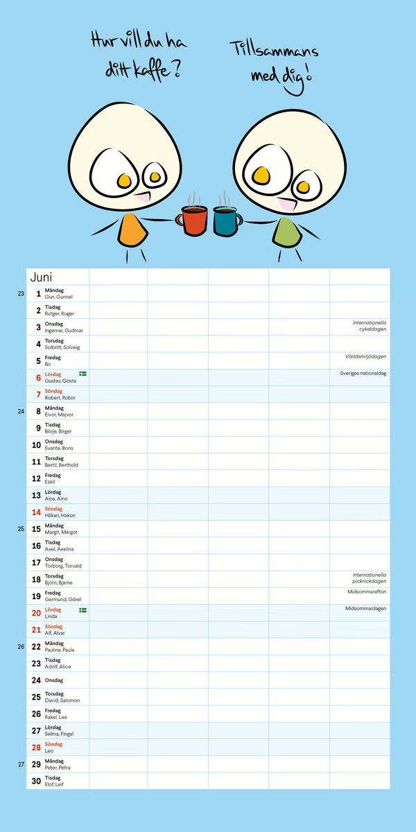Med familjekalendern från Herregud & Co på väggen får ni allt på samma plats. Kalendern innehåller ett blad för varje månad under 2026 med finurliga illustrationer från populära Herregud & Co. Med sex kolumner på varje blad blir det enkelt att hålla ordning på familjens alla aktiviteter eller annat viktigt kom-ihåg. Kalendern visar också veckor, namnsdagar och alla röda dagar.