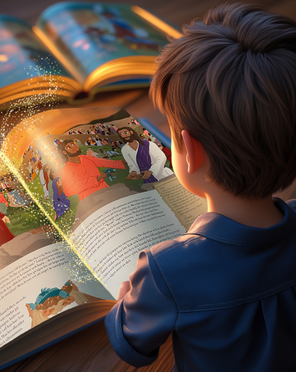 En samlingsbok grundad i Bibelns fyra evangelier, skriven på ett kreativt sätt för att hjälpa barn att lära känna Jesus och längta efter mer av Guds Ord. Med färgstarka illustrationer, roliga karaktärer och mirakelfyllda äventyr presenteras Jesus liv på ett spännande sätt, perfekt för högläsning eller för den som har börjat läsa själv. Varje kapitel erbjuder bibelreferenser och en kort bön.