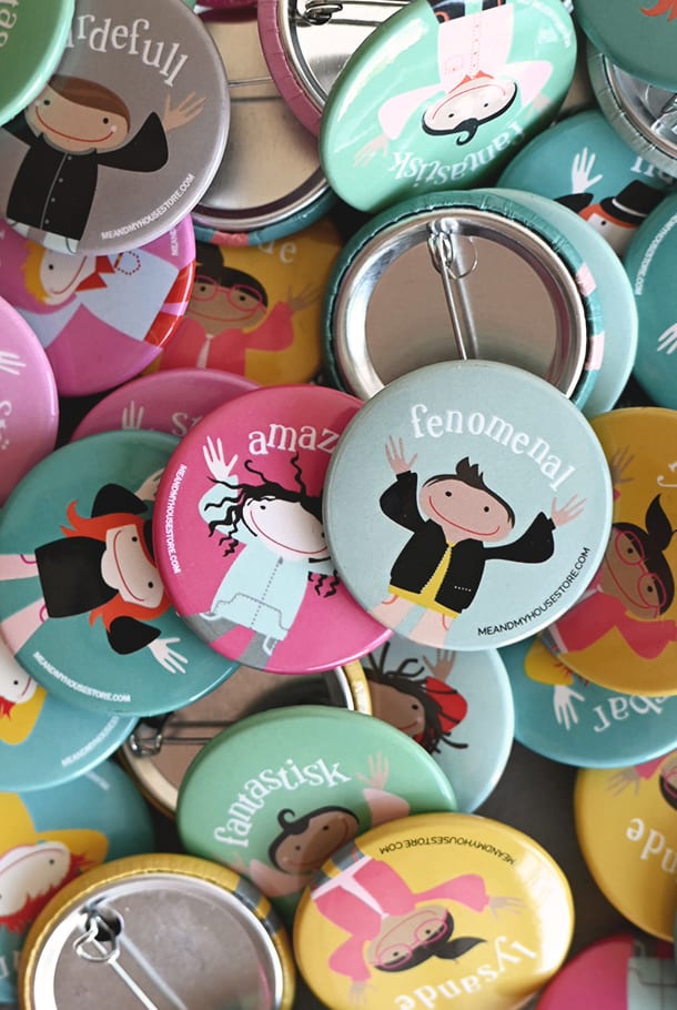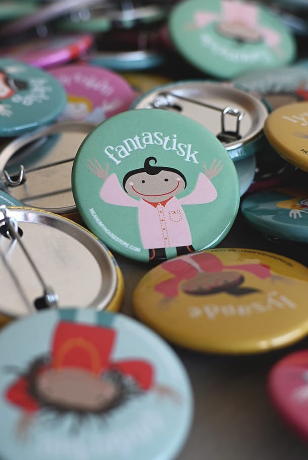 Ett härligt kit med glada knappar i sköna färger! Texterna är älskad, härlig, värdefull, underbar, fantastisk, lysande, fenomenal, störtskön, amazing och dyrbar.