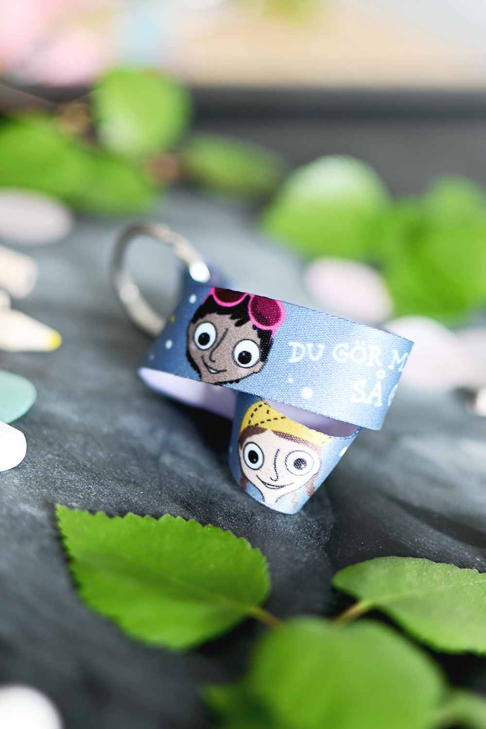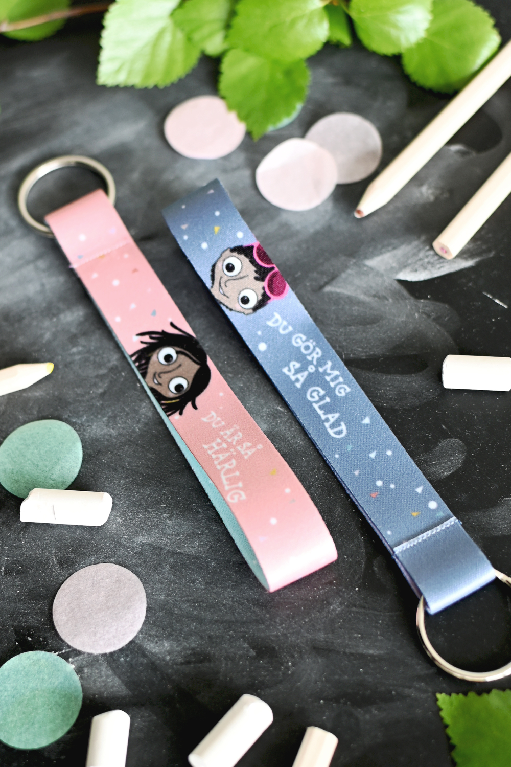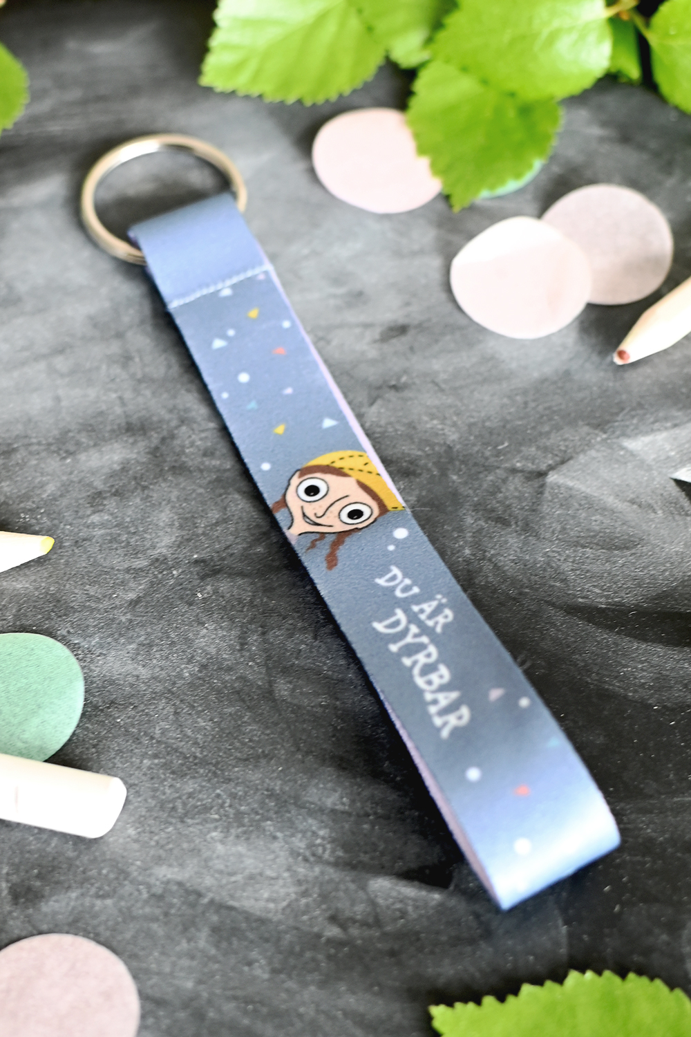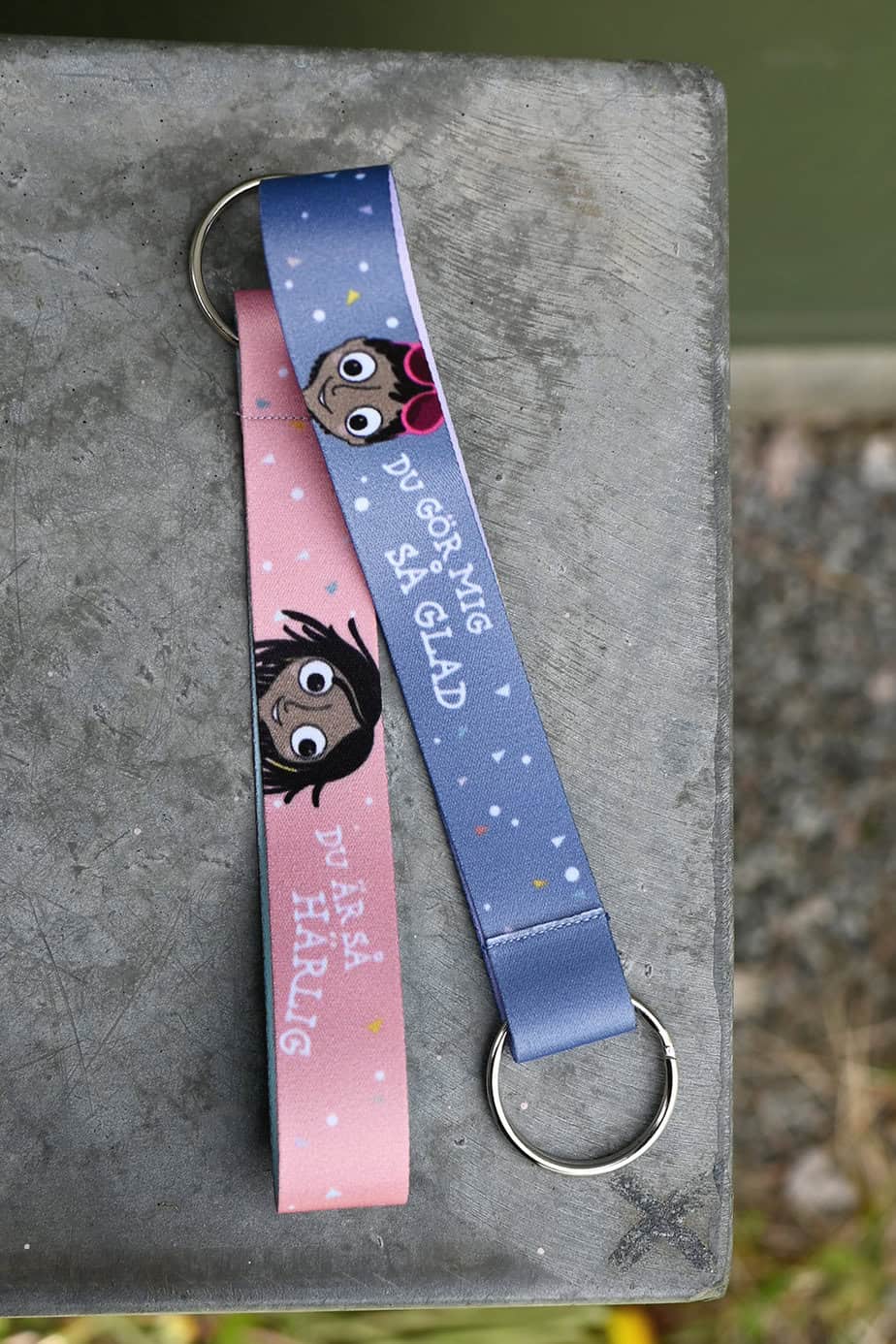 Tjusigt nyckelband med tryck. Kort, smidig och perfekt till cykelnyckeln, bilnyckeln, barnens egna hemnyckel eller att pimpa väskan med.