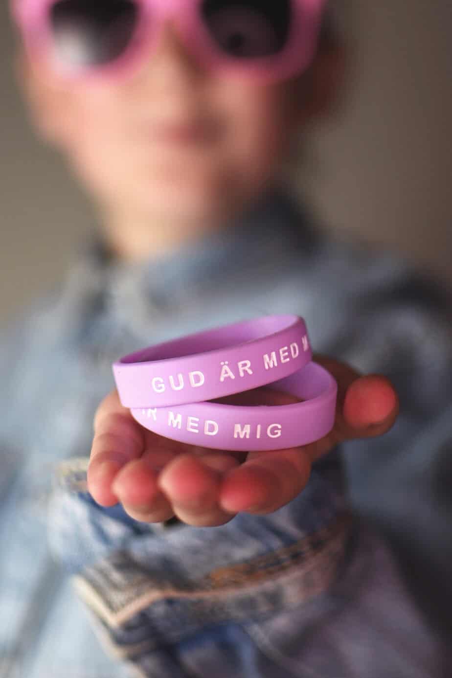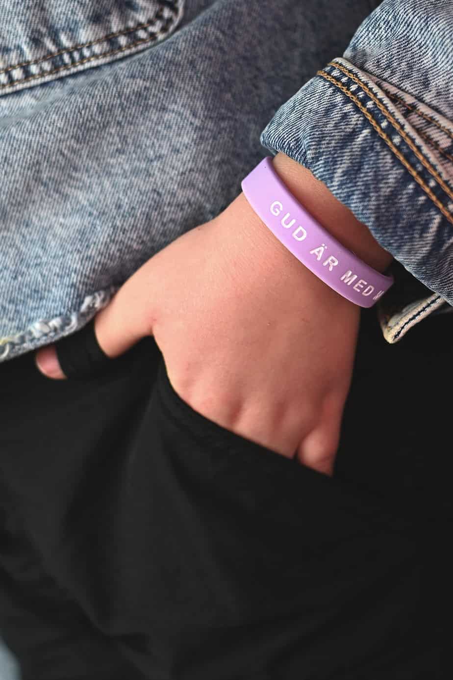 Silikonarmband i lila: Gud är med mig (barnstorlek)